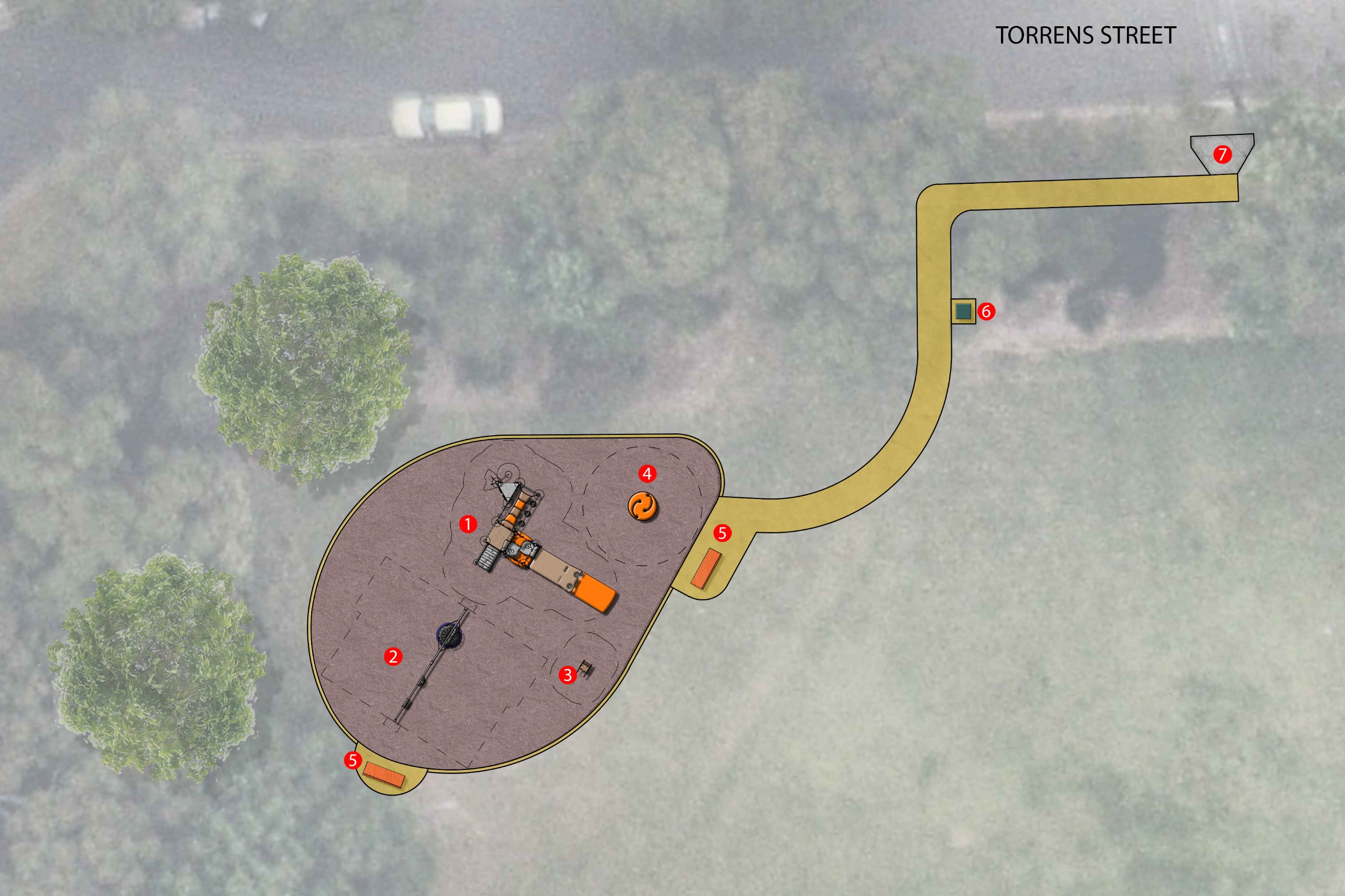 • an accessible concrete footpath connecting the playground to Torrens Street