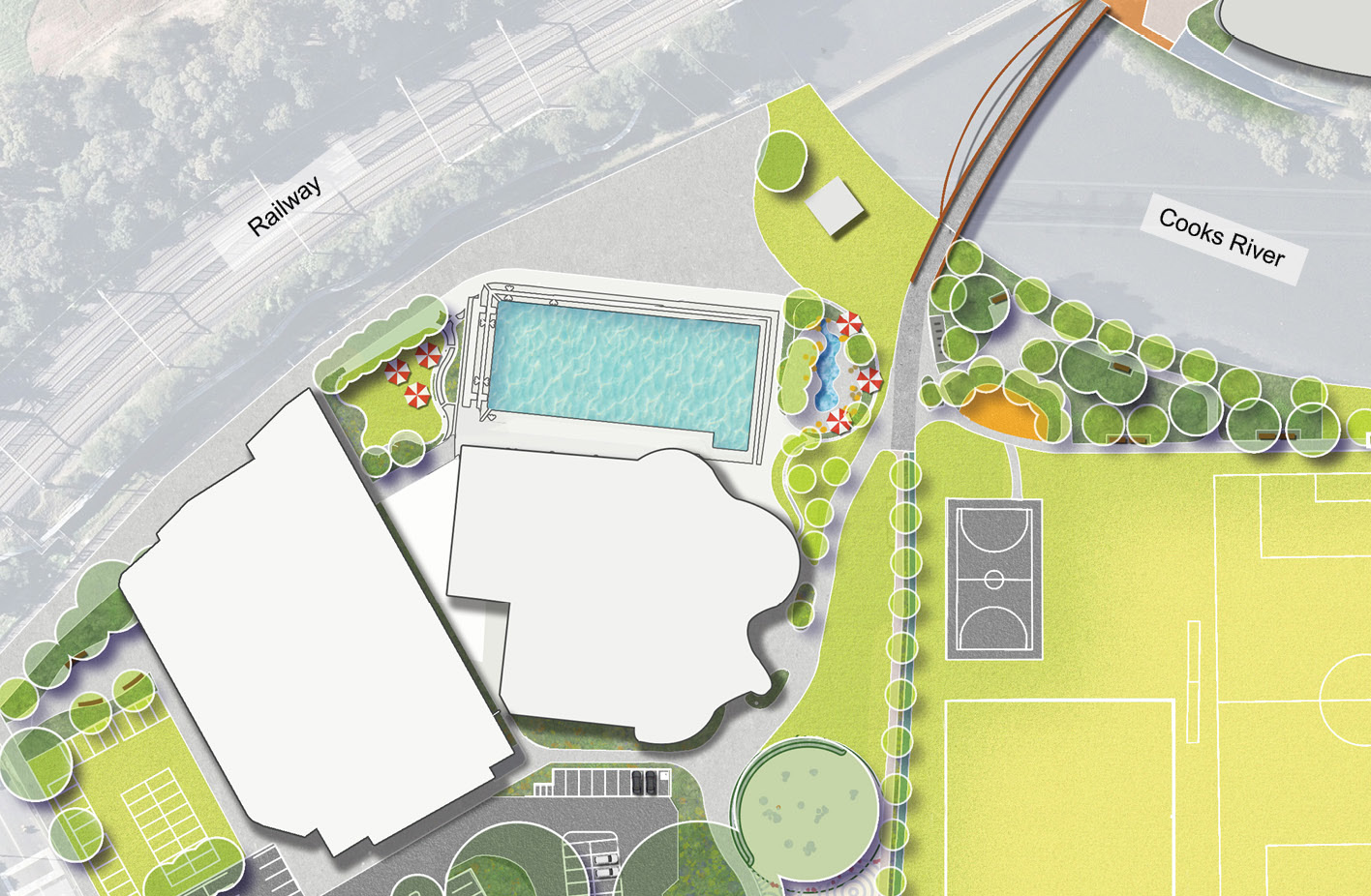 In addition, a new passive recreation space will replace the existing play space, which will be removed and a new play space constructed as part of the precinct upgrades. This space will include additional trees, landscaping and seating, as well as accommodating overflow parking for the Canterbury Leisure & Aquatic Centre during periods of high use.